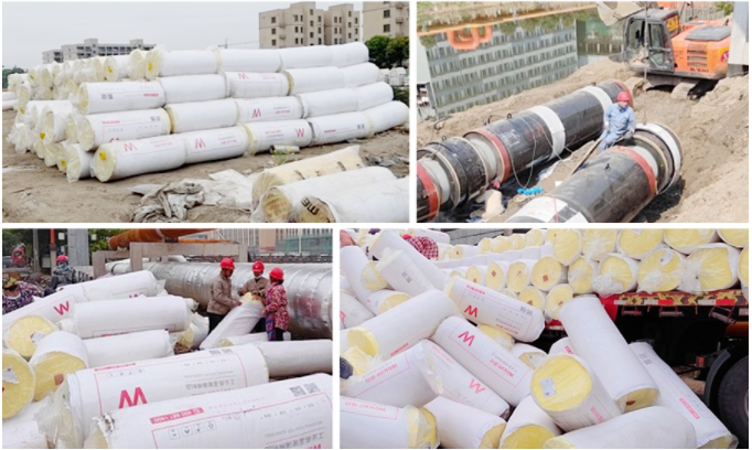 紹興濱海電廠熱網工程項目體量大,工期緊,單高溫玻璃棉用量就超過1.5萬立方。