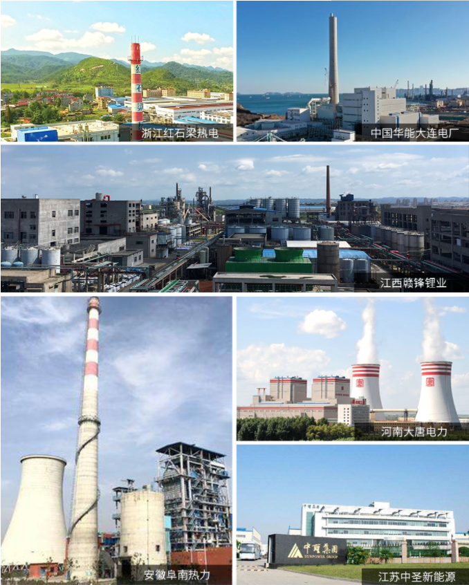 浙江紅石梁熱電、浙江富春江集團、江蘇鹽城熱電、安徽國禎環保、中國華能大連電廠、江蘇協鑫電力、江蘇恒泰新能源、江蘇蘇源熱電、江西贛鋒鋰業、安徽阜南熱力、江蘇中圣新能源、河南大唐電力、河南天豪能......